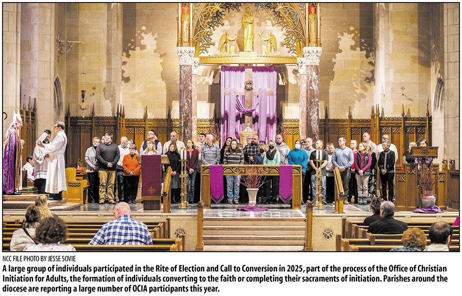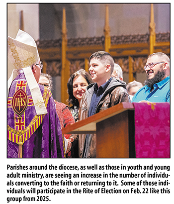 December 17, 2025 By Keith Benman Blessed Sacrament Parish in Watertown had 17 people sign up for the Order of Christian Initiation for Adults (OCIA) this fall, a record number by far for recent years. The Blessed Sacrament program provides preparation for adults wishing to convert to the Catholic Faith or desiring to complete their reception of sacraments in order to come back to the Faith. A hundred miles northeast in Malone, at St. André Bessette Parish, they also have a record number seeking instruction in the Catholic Faith through OCIA. And at Our Lady of Grace Church, in Morristown, Pastor Father Christopher C. Carrara reports getting more than half a dozen inquiries about converting or reverting to the church in the past year. Three of those are now in OCIA and more seem to be in the pipeline. That number compares to just one convert coming forward in Father Carrara’s first eight years at the parish. “Finally our young people are turning to a place where they will get truth,” Father Carrara said. Some other parishes are reporting similar surges. “I get the feeling that we aren’t unique, said Deacon Kevin Mastellon at Blessed Sacrament Church about the increase in OCIA candidates there. “That it’s happening. That it’s widespread. … the pendulum is swinging back a little. We’re having more people come to church and come back to the Church. “ In addition, diocesan youth leaders report dramatic increases in attendance at events such as diocesan-wide retreats, leadership groups, Mass, and certain prayer rituals. That all runs counter to national surveys conducted over the last few decades that have shown the number of Catholics declining and less church participation by those that remain. But one of the most recent national surveys seemed to pick up on the trend. According to a 2025 survey by the Catholic non-profit Leadership Roundtable, young adult Catholics are now the most likely of all age groups to attend Mass and engage in parish activities beyond Mass. That’s a reversal from previous surveys which showed they were the least likely of all age groups to do those things. That finding didn’t surprise Patrick Looby, the Ogdensburg Diocese’s director of Youth Ministry and Campus Ministry. People are looking for truths they can put to use in their lives and relationships, he said. That’s one reason why three young people, non-Catholics, joined the St. Francis Solanus Church youth group recently in Harrisville looking to convert, he said. And a few others have followed them there since. And it’s why youth retreats like ones for college students at Camp Guggenheim in September are attracting increased numbers. “Once they get in there, there is a thirst for what’s being offered,” he said. The “hook” for getting young people into youth activities 30 years ago might have been things like pizza or music, Looby said. Now, ancient rituals like Eucharistic Adoration seem to be a fascinating enticement for many of the young. “To sit in silence and reach out in faith and pray is much more acceptable now, because people are open to it,” he said. At Blessed Sacrament, OCIA co-leader Kathy Allan has also noticed the pull of tradition. She said would-be converts are often “in awe” of Catholic churches when they first walk in. And it’s something more. “Many of them come because the world is so unstable. And they’ve researched this. They say ‘This is the church Jesus gave to Peter,” she said. The extent of that research is another big change Allan has noticed over the years. Some OCIA candidates at Blessed Sacrament were already among the 2.7 million YouTube followers of Bishop Robert Barron or the 1.2 million who follow Father Mike Schmitz before coming to parish offices to inquire about conversion. “Soldiers on base (Fort Drum) will actually talk with each other about it,” she said. “One will say to another ‘You should listen to Bishop Barron’ or ‘You should listen to Father Schmitz.’ It’s like that now.” The diversity of the OCIA classes also gives Allan hope. This year’s included a 76-year-old, a professional hockey player, soldiers, soldiers’ spouses, three older teens, and a corrections officer. Some are of Hispanic heritage and bi-lingual. “The single most important thing is witness.” said Deacon Mastellon. “We have to be the same person outside of Church that we are in the Church. ... That attitude is obvious and becomes obvious to anyone who is searching. The person says, ‘I want what he has or what she has.’” |