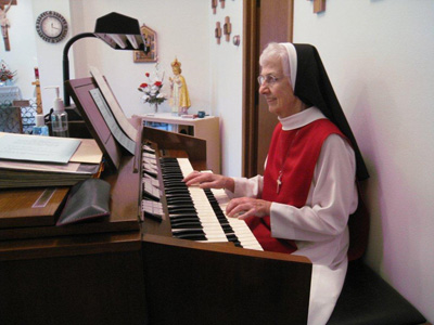Sister Marilyn McGillan , newly elected superior of the local community, is shown at the monastery’s organ.