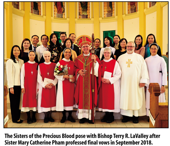 Feb. 19, 2020 By Darcy Fargo WATERTOWN – At the end of a short, dead-end street sits a large light-colored building with a cross on the wall. It’s the Precious Blood Monastery, currently home to four Sisters Adorers of the Precious Blood. “We’ve been in Watertown since 1963, and we moved into this building in 1976,” said Sister Marilyn McGillan, superior of the monastery. “The foundresses were all from Manchester, New Hampshire. They left a monastery there and founded this house.” Sister Marilyn said the Sisters of the Precious Blood were introduced to the region through the works of Msgr. Robert McCarthy, who had a great devotion to the Precious Blood and to prayer. “He wanted a monastery established here,” she said. “He went to the bishop in 1963 and received permission to proceed. When the first sisters arrived, they lived in what is now the (D.L.) Calarco Funeral Home.” Currently, the monastery is home to Sister Marilyn, Sister Rose Rossi, assistant superior, and Sister Linh Therese Nguyen and Sister Mary Catherine Pham. Two other sisters, Sister Martha Emery and Sister Elizabeth Washburn, are members of the community but are currently living in other locations due to health reasons. The sisters live an enclosed, contemplative life dedicated to prayer, and it was that prayer life that drew the four sisters to the community. “I had a deep sense that God was calling me to this life,” said Sister Mary Catherine. “I’m an introvert. Though I “I guess my personality involves forming one-on-one relationships,” said Sister Rose, who entered the community after retiring from a 35-year nursing career. “I find intimate prayer attractive.” After visiting another community in her discernment process, Sister Rose was introduced to the Sisters of the Precious Blood when she saw Sister Marilyn and another sister on EWTN. “I lived alone,” she said. “I put on the TV and put on Mother Angelica. She was interviewing two sisters. I heard the term ‘Precious Blood.’ I thought, oh my goodness! That’s life! Blood is life! How much closer can you get to Jesus?” Sister Linh Therese, who immigrated to the United States from Vietnam and says she is still developing English proficiency, said the sisters’ prayer ministry impressed her when she first visited the monastery as part of her discernment process. “I heard people calling here asking the sisters to pray,” she said, noting she also heard people call to say the sisters’ prayers were answered. “They call in, ‘my daughter or son now has a good job or received healing.’ This house, it’s a miracle.” “I entered at age 18,” said Sister Marilyn. “It sounds ridiculous, but I actually had the feeling I was called when I was a baby. My mother used to put a blanket on the lawn, and my siblings and I would sit on it. I remember sitting and looking at the grass around the blanket, grass blowing in the breeze. Even at that age, I remember thinking, ‘something is making it wave like that.’ I wanted to think more about it, think about what made it grow. It made me know my life wasn’t in my hands.” The phone at the monastery rings frequently, and most of the calls are from people requesting prayers from the sisters. “It’s heartbreaking some of the things people confide in us as they ask for prayer,” said Sister Marilyn. “Sometimes it’s someone whose husband left them. Sometimes it’s someone with a sick child.” “Sometimes, I don’t know what to say when I hear their stories,” said Sister Mary Catherine. “I just listen. I say, ‘yes, I’ll remember you in prayer.’ We have a request wall. We put the prayer requests there as a reminder when we go into the chapel. These are prayers brought to us. It’s a privilege to be called to this life.” “Sometimes, we pray for generations of families,” said Sister Rose. As part of their apostolate to spread devotion to the Precious Blood, the sisters also run a store that sells devotional items, including the Precious Blood shield, Precious Blood cords and rosaries with instructions to pray the Chaplet of the Precious Blood. They also offer confession guides. The monastery has a card shop on location, and also takes orders through a website, sisterspreciousblood.org. “We serve as sort of a clearing house,” Sister Marilyn said. “We order in bulk, package the hosts and distribute them to parishes. We’ve done that since day one here.” “I appreciate this life,” said Sister Mary Catherine. “Any life, there’s always ups and downs. As long as we serve what God wills for us, any vocation is beautiful.” For more information about the Sisters Adorers of the Precious Blood, visit sisterspreciousblood.org. |