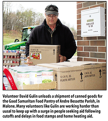 November 12, 2025 By Keith Benman Parish food pantries across the Diocese of Ogdensburg are working to keep up with surging demand brought on by the cutoff of federal food stamp benefits to families and the elderly. Regular funds for the federal government’s Supplemental Nutrition Assistance Program (SNAP), commonly called food stamps, ran out Nov. 1 because of the government shutdown. Courts have now ordered the Trump administration to fund the program. As of press time, there was no determination on when program recipients would receive the food assistance. “A lot of people with a little bit of help from SNAP, and what they make, were able to make ends meet,” said Father Scott R. Seymour, director of Catholic Charities for the diocese. “But now they can’t.” Many of the people who receive food stamps are the working heads of families, according to local food pantry operators. Other food stamp beneficiaries are the elderly, often on fixed incomes. Left without food stamps so far this month, those are the people now streaming into food pantries to register for monthly food packages or ask for immediate food aid off the shelf. Since Nov. 1, households coming in for food aid at the Good Samaritan Food Pantry at André Bessette parish in Malone have surged to 25 to 30 per day as opposed to an average of about 20 per day previously, according to Susan Perkins, St. André Bessette parish business manager. As of the beginning of the month, 227 households were signed up with the food pantry for a regular monthly food distribution pack containing enough for several days of meals. In those households are 129 children. But with 1,389 households in the town of Malone receiving food stamps, Perkins expects the numbers signed up at the food pantry to increase dramatically. “We just believe without SNAP the ones that haven’t been coming in will come,” Perkins said. At the St. Peter’s Outreach Food Pantry in Massena, it’s the same story. The phone was ringing off the hook on both phone lines there in the first days of the month as people sought food assistance to make up for food stamps many would have received by now. Generally, the slowest time for the food pantry is early in the month, according to food pantry director Elaine LaPage. But on Tuesday, 30 people came in to sign up for regular monthly food packs or seeking other aid. That compares to about a dozen that might come in daily at the beginning of a typical month. Food pantry operators expect that surge to continue all the way through at least the month of November. Food stamps are not the only way the government shutdown is hurting families, according to Father Seymour. Some states, including New York, have warned distribution of Low-Income Home Energy Assistance Funds will be delayed. That program, commonly known as HEAP, uses federal funds to help pay heating costs for families and many of the elderly in the North Country. The delay comes just as the winter heating season is starting. And in the Watertown area, civilian employees at Fort Drum are not getting paid. Father Seymour said some have sought aid from Catholic Charities. All of the above government shutdown effects are creating crisis situations for many families. “That’s been our experience so far,” Father Seymour said. “A lot of people that are struggling with basic necessities – not just food insecurity, but fear of electrical shut-offs, a lack of fuel – people are dealing with all those things.” Because the food stamp cutoff story has been in the news, people are calling food pantries offering donations, more is being left in collection boxes at churches, and grocery stores are also stepping up donations. “I think people, when you hear that children are going to go hungry, that really strikes a chord,” LaPage said. In response to the federal food stamp cut-off, Gov. Kathy Hochul released $65 million in emergency funds to help shore up supplies at food pantries across the state. Good Samaritan Food Pantry in Malone received $2,300 of that money, according to Perkins. St. Peter’s Outreach Food Pantry, one of the largest in the North Country, received $25,000. “We need to think about others and not just ourselves,” Father Seymour said. “We need to put others and their basic needs first. We all need to work together and come together.” |