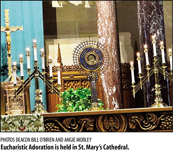March 12, 2025 By Mary Beth Bracy, consecrated virgin “The Eucharistic Adoration at St. Mary’s Cathedral started before COVID,” shared Dan Washburn. “Mary Wood and the other members of the Legion of Mary came and asked Father Joe (Morgan) if they could have the Adoration on Friday. And Father agreed to have it before the noontime Mass at the Cathedral. It was very slow at the beginning. They struggled to come in for Adoration on a regular basis. But they continued it anyway.” The number of people gathering to spend time with Jesus has since increased. “Now, from the three people that started out, it became 15 people and more (who) wanted to come in for Adoration,” noted Washburn. “They are all staying for the Mass.” Initially, Eucharistic ministers were exposing and reposing the Blessed Sacrament. Father Michael Marzan has since taken on the role. “Since Father Mike (Marzan) started (leading) it, there is more reverence; as we do the traditional way of the Eucharistic Benediction,” said Washburn. “It has made a huge difference. And now we integrate the Rosary. People really love the focus on the Blessed Sacrament, the focus on prayer, the reverence. The use of the incense is something special. Incensing the Blessed Sacrament at the Benediction is a sign of adoration and worship given to Christ who is truly present upon the altar. It becomes a visible sign of our prayers rising to heaven.” The Holy Hour also includes adoration hymns, bells and candles. “(Attendees) said, ‘It’s wonderful that Father Mike is doing all of that.’ It gives us such a deep prayer feeling because we’re in front of the Blessed Sacrament and we wanted it,” Wood recalled. “I had the feeling that Jesus himself called us to do what he wanted us to do. What he was asking us to do – to worship him in the Eucharist.” God blessed their fidelity, reflected Wood. “We were able to add Wednesday Adoration after the outcome of the Friday Adoration…. The first time I came in and saw Father Mike, I thought, ‘What is he doing? This is wonderful.’ And then I knelt down. It could become more powerful. I was able to become more prayerful in the presence of Jesus. And that’s hard to do. It’s hard to clear your mind and really believe that we are in the presence of Jesus Christ. But we’re in the presence of him all the time. Some of us do know that. But there’s a more special way to be in the presence of Jesus. We just got to commit, like doing the regular Holy Hour.” Amy Schirmer explained why Eucharistic Adoration is important to her personally. “Because I love Jesus and I want to be with him and this is a beautiful way to do that quietly,” she said. “Well, I think the first time I came in, seeing the candles and everything was dark except for the altar, it draws you. It draws you into devotion and it’s just lovely. It’s like being with your best friend in the place where everyone’s relaxed and it’s so intimate, it’s so beautiful. I don’t know how to explain it.” “If you take scripture literally, and some of it has to be taken literally, when he said your garment will overflow, the hem of your garment will overflow,” added Donna Merreck. “He is so generous with his gifts. We have been blessed beyond measure. And we have to attribute it to adoring the Lord for one hour, whether it’s daily or on Friday or how often you can adore the Lord. He will not be outdone in generosity. And when you look back, hindsight is the greatest teacher because we can say, you know, this was totally the hand of God who worked.” Merreck is grateful for the countless graces and blessings in her life from Eucharistic Adoration. “When children can see particularly their father and mother praying and that it’s done quietly, it does preach the Gospel,” she said. “Our three children are practicing Catholics. Their spouses are practicing Catholics. That’s to give him the honor and glory. That is how we have been blessed. So there is an impact on the family.” Merreck’s suggestion: “just try it.” “Give him 15 minutes the first time and then after a week or two weeks you’ll be going back for 20 minutes, a half an hour,” she said. “Then it’ll increase until you give him an hour. Sometimes, there is always a struggle of giving time in adoration. If you think you haven’t got the time of the day, you don’t have enough time, that’s a struggle. You’ll find time and you have to do it.” “I think it’s a blessing to the whole parish,” Wood noted. “I see more people at Mass now. There’s something that’s bringing people in. It’s the fact that Jesus is blessing us and calling us, and more people are hearing him now.” Our faith in the Holy Eucharist is at the heart of what makes us Catholic, explained Wood. “To bring the power of the body, blood, soul, and divinity of Jesus Christ into our hearts. There’s this mercy, there’s this love,” she said. “The Eucharist is the summit of the Catholic Church, the source of Christian life. That’s what makes us different. And when you sit here in front of the exposed Blessed Sacrament and you really look, and you say the prayers, especially the reparation to the Sacred Heart of Jesus (it is powerful). I do like the litany of the Sacred Heart of Jesus. We pray for the reparation of sins, for the forgiveness of sins to everyone. As you look around, there are so many things to be prayed for, the culture of abortion, the kind of hate that you see and murder and bloodshed, you see all of these things and only Jesus can change it. So yes, that’s part of adoration. You know, for me, one hour of personal silent prayer is not enough, it would be better if it was two hours.” Father Michael Marzan contributed interviews for this article. |